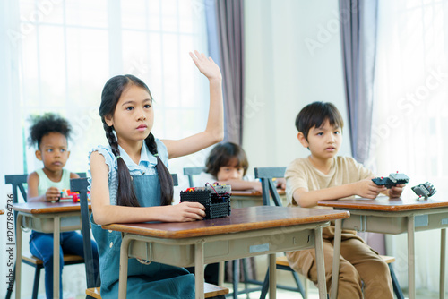 Group of diverse children enjoy learning about the STEM.