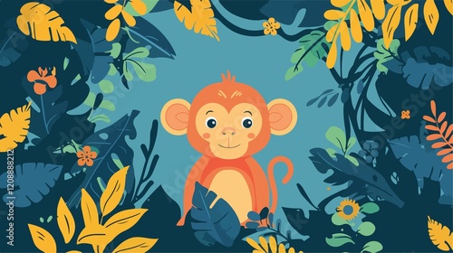 Adorable Cute Monkey Animal Flat Vector Illustration