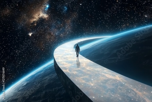 lone figure, spiritual cosmic journey, metaphysical exploration