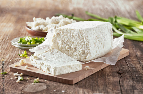 Świeży biały ser ze szczypiorkiem, dymką, zieloną cebulą