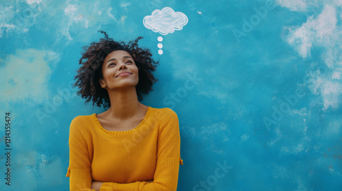 Woman Smiling at Chalk Thought Bubble on Painted Wall