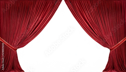 elegant red velvet stage drapes are parted in the center suggesting an event or reveal on a blank white background velvet illustration