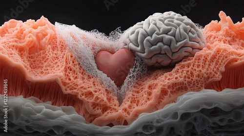 Intricate Visualization of Heart and Brain in Abstract Biological Form