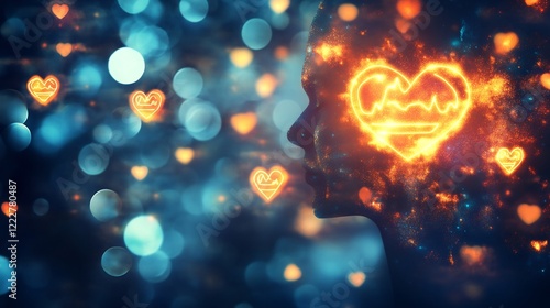 Creative representation of psychological well being and therapy illustrated with glowing emotional stability symbols