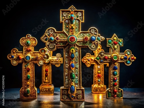 Byzantine Reliquary Crosses: Low-Light Photography, Isolated PNG