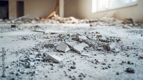 Debris concrete on the floor Broken Gravel Concrete floor after demolished by a jackhammer office renovation job in the construction industry Sandwash Concrete debris left after repair work