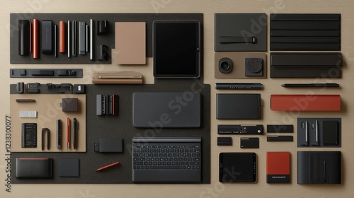 Flat lay of a minimalist workspace with a laptop, tablet, and smartphone, leaving room for office tech-related content.