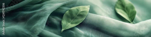 Close-up of two leaves on a piece of cloth, suitable for textile design or botanical illustration