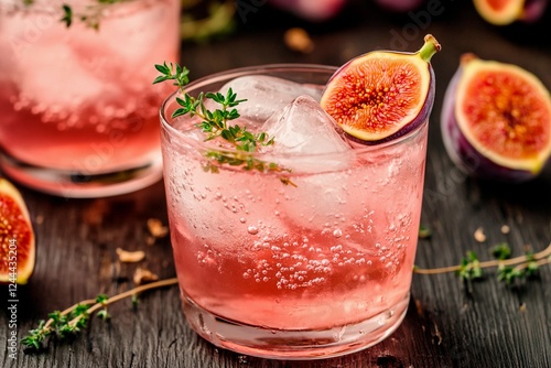 Refreshing fig cocktail garnished with herbs and fruit creates a vibrant summer vibe in a glass