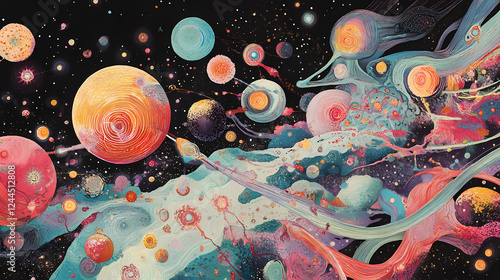 An artistic interpretation of multiple universes or parallel realities existing within a multiverse, connected by quantum phenomena. Parallel Universe & Alternate History. Illustration