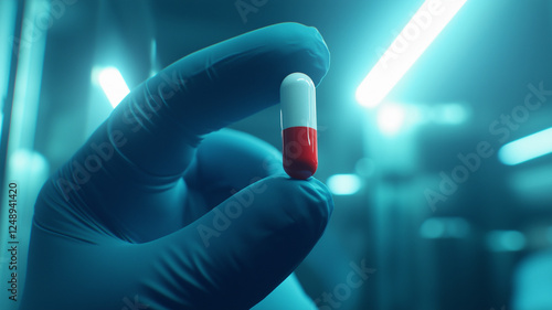 Grafika medyczna. Opracowanie leku w laboratorium. Lekarstwo, pigułka, kapsułka