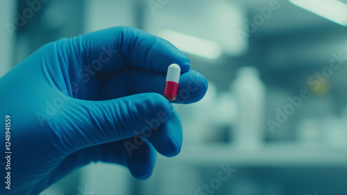 Grafika medyczna. Opracowanie leku w laboratorium. Lekarstwo, pigułka, kapsułka