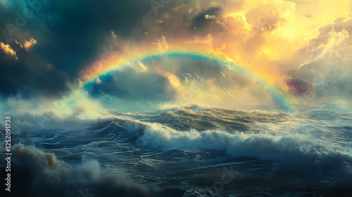 A rainbow emerging after a storm signifies that hope for a better tomorrow remains, despite the difficulties faced. Rainbow Storms. Illustration