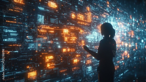 Futuristic E-learning Training with Holograms in Cyberpunk Digital World for Skill Development and Professional Growth