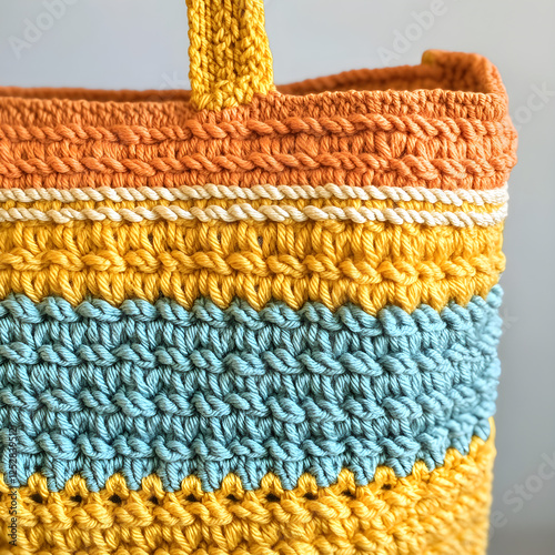 Crotcheted colorful bag close-up
