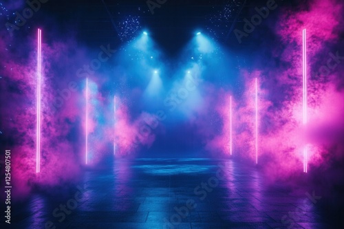 Vibrant neon light show nightclub digital art urban scene low angle party atmosphere