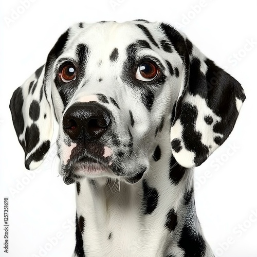 Ravishing adorable dalmatian dog portrait on white isolated background