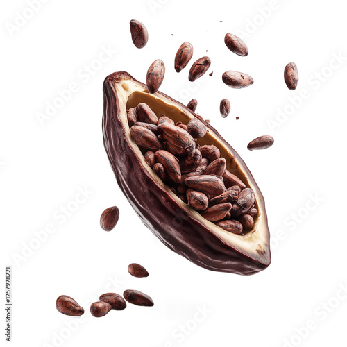 #1257929080Fresh Open and Whole Cacao Pods with Beans Isolated on White Background