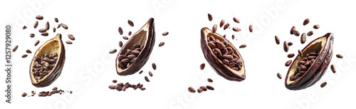 Cacao Pod with Floating Cocoa Beans Set