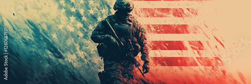 American Soldier Patriotism - A soldier stands before an American flag, symbolizing courage, duty, and national pride