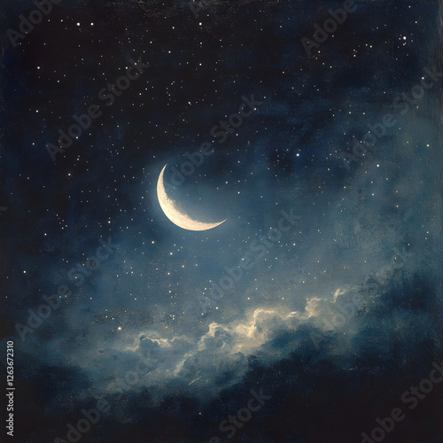 Celestial Symphony: An Ethereal Night Sky with Constellations and Crescent Moon