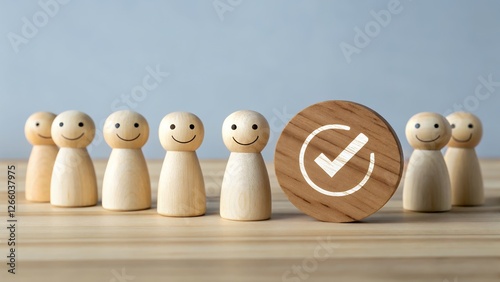 Teamwork Triumphs: Wooden Figures Celebrate Success, Quality, and Leadership. A perfect visual for business, collaboration, and achieving goals.