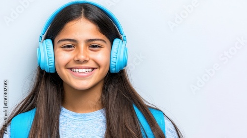 Listening to music girl with headphones studio portrait happy expression youthful vibe