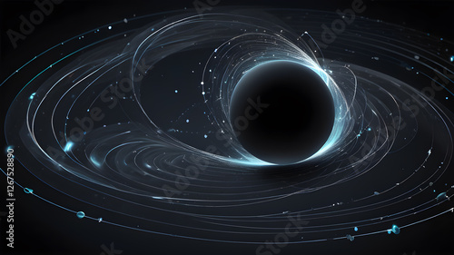 Science element concept Quantum Mechanics, formula, curvature of spacetime in a gravitational field, black hole,