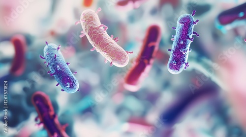 Colorful Microscopic View of Bacteria with Vibrant Background