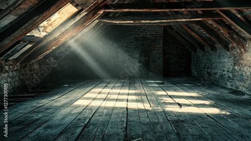 Sunlight Streams Through Dusty Attic with Wooden Floorboards