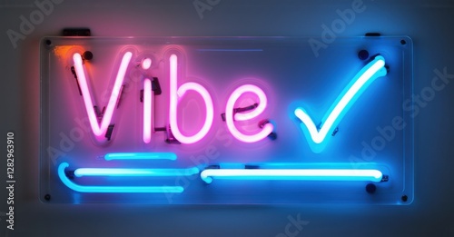 Glowing neon sign with the phrase vibe check featuring neon energy waves and a bright glowing checkmark Colorful and dynamic design radiating a trendy and energetic feel