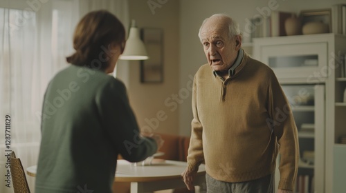 Dementia symptoms in an elderly person showing signs of aggression. Featuring confusion and frustration