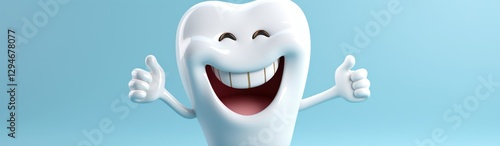 Tooth character with toothbrush isolated on blue background with copy space. 3d illustration. Dental concept with copy space