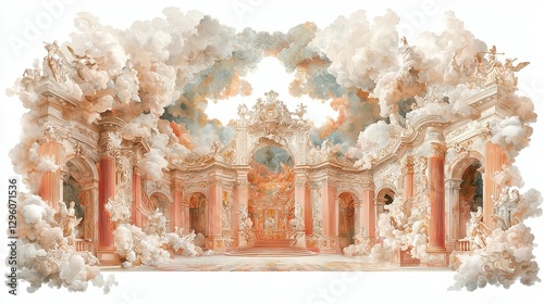Whimsical Watercolor Illustration of Opulent Renaissance Palaces, Featuring Lavish Mansions with Frescoed Ceilings and Sculpted Columns, Ideal for Artistic Projects
