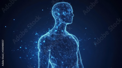 Abstract digital human body. Polygonal wireframe silhouette. Low poly anatomy blue background.