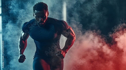 A dynamic ad for a new workout gear brand, showing a fitness enthusiast wearing the gear during an intense workout session