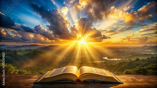 Aerial View Holy Bible Radiant Light Divine Illumination Drone Photography