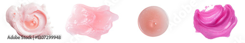 From a top-down perspective, a puddle of pink dishwashing liquid detergent is visible, isolated on a plain white background