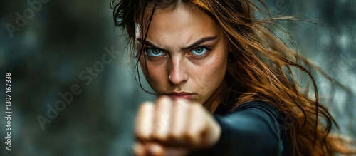 The empowered stance of a woman ready to defend herself.