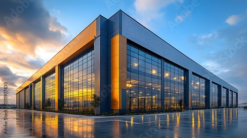 A modern industrial facility being built quickly using pre-engineered steel components, reducing costs and time, high-resolution