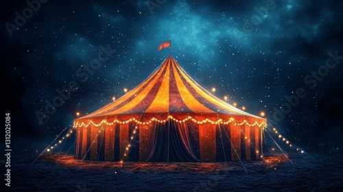 Enchanting Illuminated Circus Tent Under a Starry Night Sky