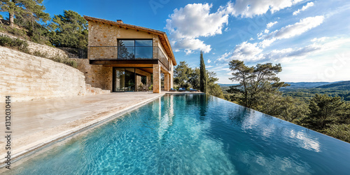 belle maison en pierres avec piscine à débordement dans le sud de la France