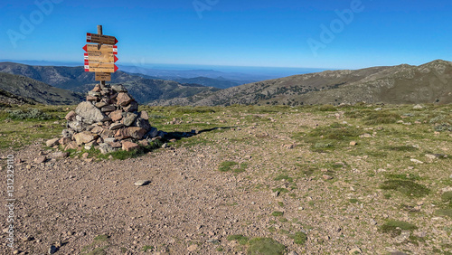 direction sign of hiking path in mountain in national park Gennargentu in Sardinia