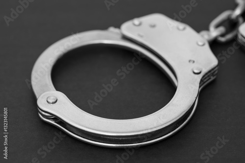 Stalowe kajdanki policyjne z bliska na czarnym tle