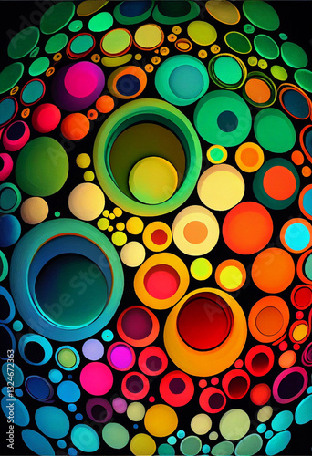 Kolorowa abstrakcyjna kompozycja 3D – dynamiczne kule i warstwy w stylu futurystycznym, gradientowe barwy, nowoczesna sztuka cyfrowa, geometryczny wzór, energetyczna dekoracja, intensywne kolory, krea