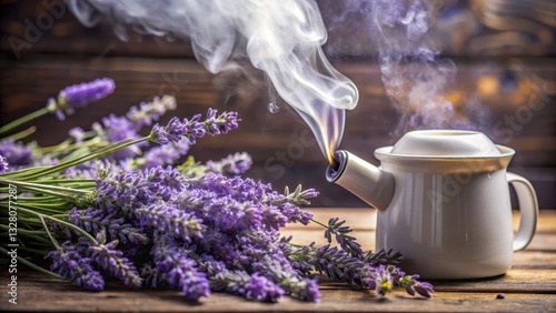 Aromatic lavender essential oil being poured into a steam inhaler, steam, aromatic, steam, aromatic, wellness, herbal