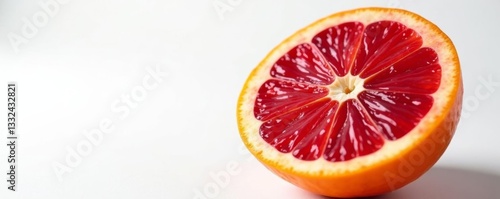 Close-up of vibrant cut blood orange slice on white background, food, colorful, fresh
