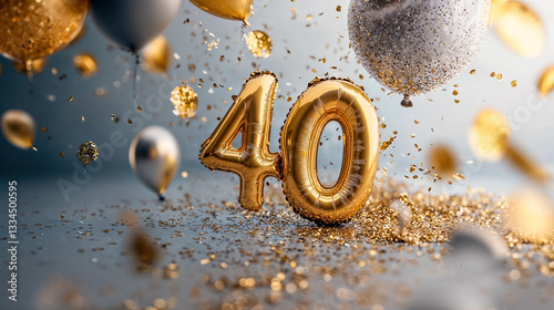 carte d'invitation avec ballons à l'hélium en forme de texte "40" pour le quarantième anniversaire
