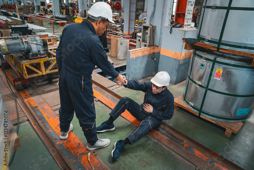 A man got factory accident serious industrial injury. Ensuring workplace safety helps prevent occupational injuries from machinery accidents, safety violations, and hazardous work environments.