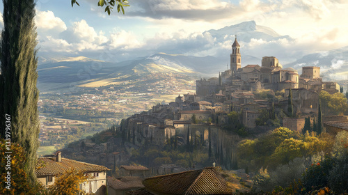 Assisi, a historic municipality in Umbria, Italy, situated on a hill and known as the birthplace of Saint Francis of Assisi (1181–1226), one of Italy’s patron saints